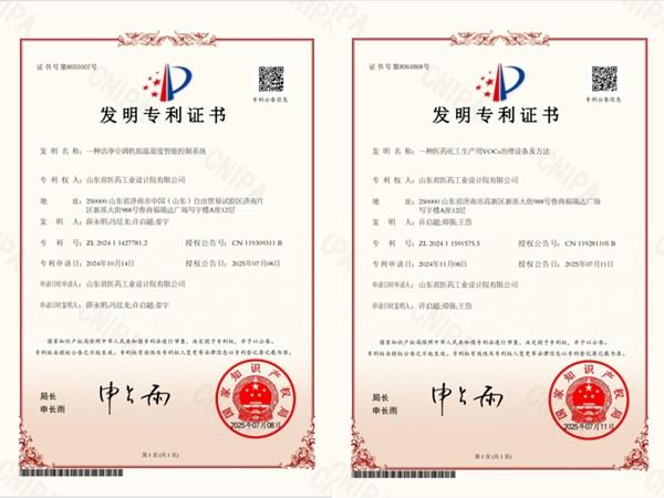 近日,省醫工院自主研發的“一種潔凈空調機組溫濕度智能控制系統”和“一種醫藥化工生產用VOCs治理設備及方法”獲國家發明專利授權,標志著公司在醫藥工程設計、智能化控制及低碳環保領域取得重要突破。