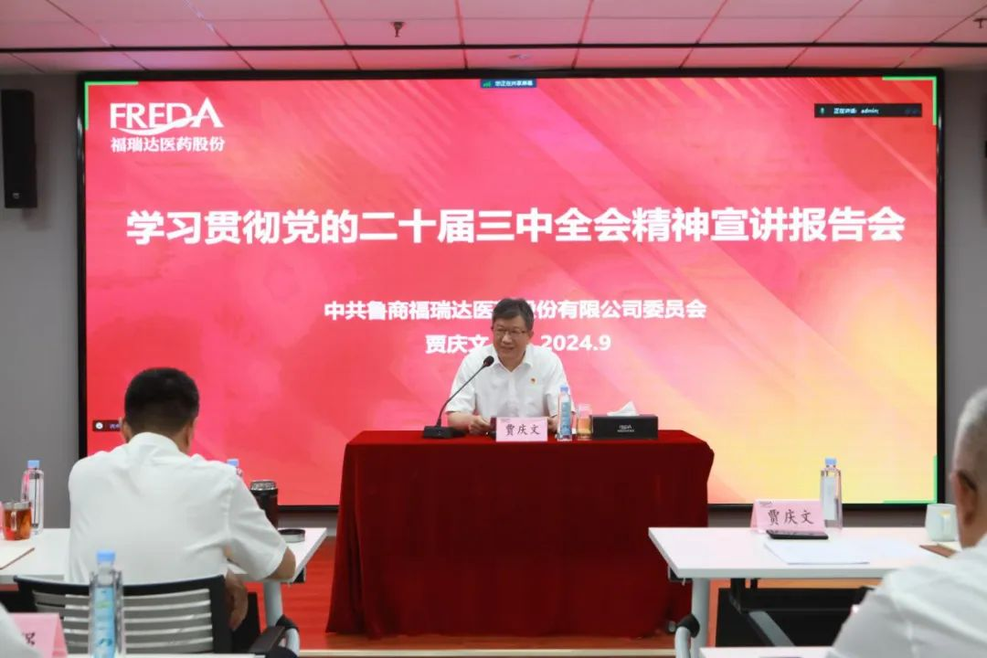 報告會上,賈慶文緊緊圍繞習(xí)近平總書記在黨的二十屆三中全會上的重要講話精神和全會《決定》,對全會的基本情況,以及深刻認(rèn)識進(jìn)一步全面深化改革、推進(jìn)中國式現(xiàn)代化的重大意義和總體要求等進(jìn)行全面系統(tǒng)解讀,對《決定》提出的進(jìn)一步全面深化改革重大舉措,尤其是國資國企改革舉措進(jìn)行深入闡釋,并結(jié)合福瑞達(dá)實際,就抓好全會精神學(xué)習(xí)貫徹、推動改革舉措落實落地作出安排部署。